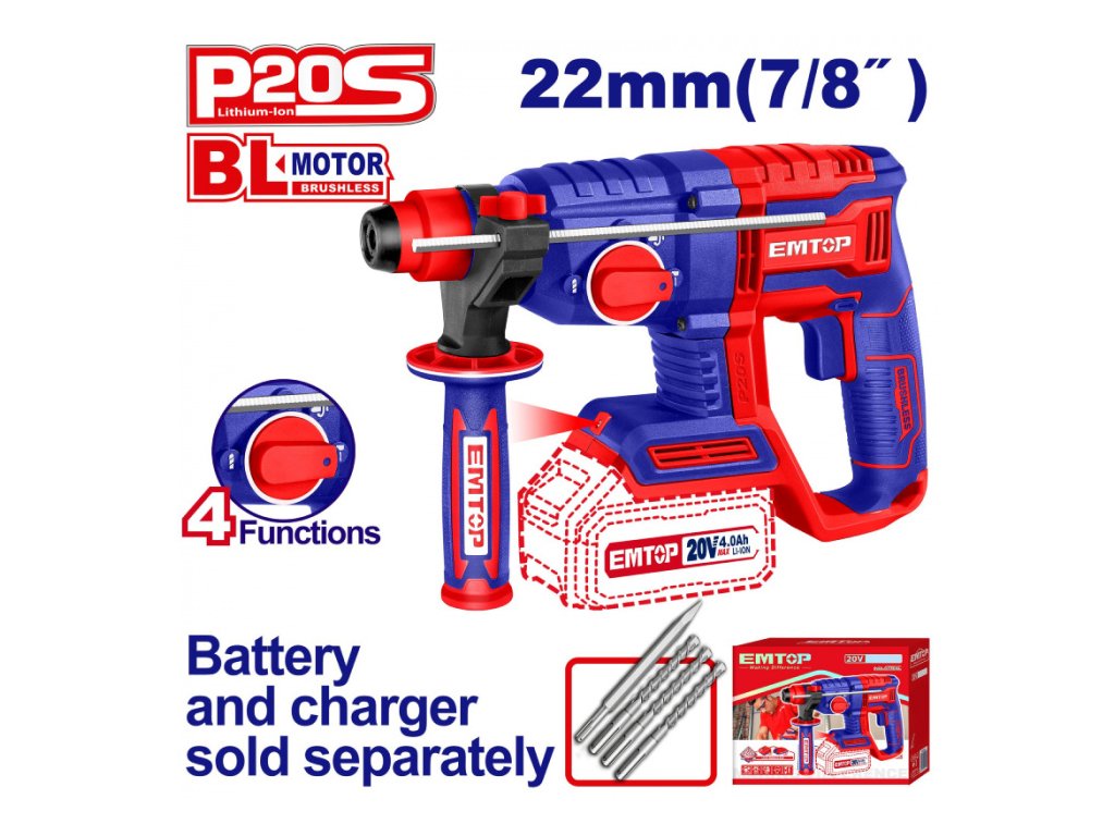 Aku vrtací a sekací kladivo 20V 22mm 2,0 J solo