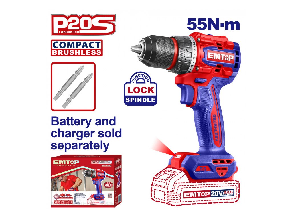 Aku vrtací šroubovák 20V 55Nm solo