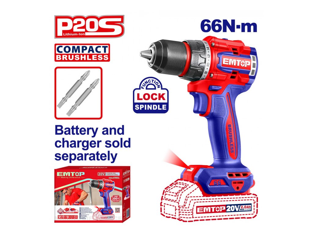 Aku vrtací šroubovák 20V 66Nm solo