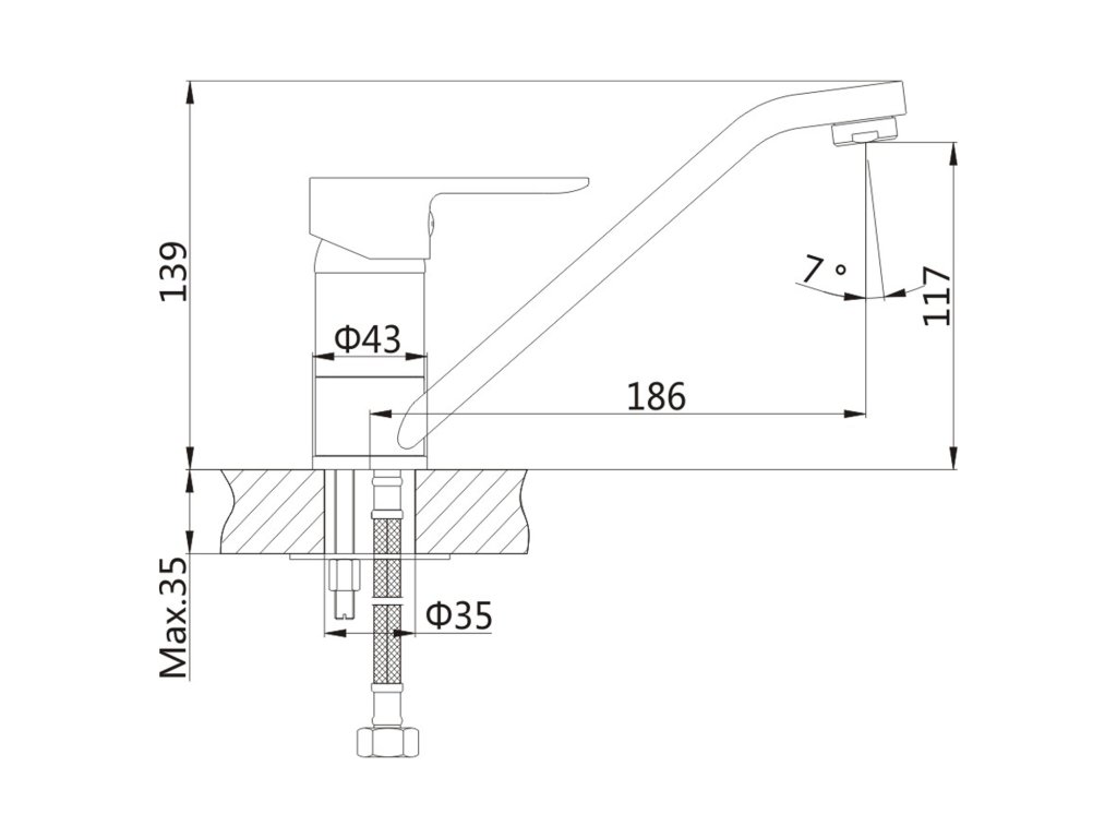 BARON ECO 6 l/min, stojánková dřezová baterie, 186mm, otočné ramínko, chrom