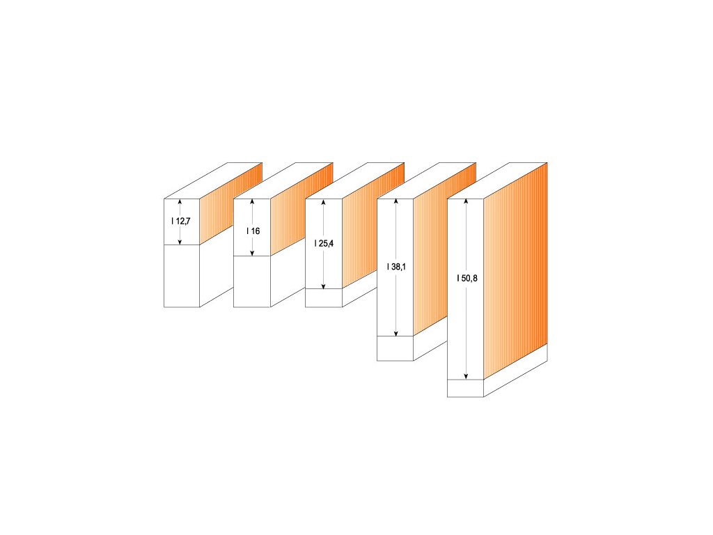 Drážkovací fréza se závitovým upínáním je ideální pro frézování hlubokých otvorů, závěsů na bezfalcových dveřích pomocí šablony a jiného stavebního kování. Ve spojení s upínací stopkou C797 pro upnutí v 12 mm kleštině dosahují prodloužené hloubky řezu až 132 mm. Díky HM břitům jsou vhodné na masiv, dřevěné kompozity, plasty a lamináty. Může být používána na obrábění v CNC frézách a ručních frézkách. Upínací stopku pro upnutí v kleštině je nutno objednat zvlášť.