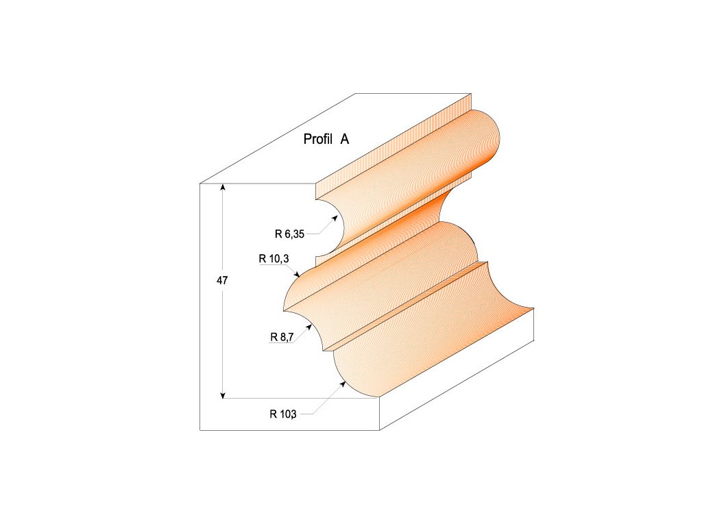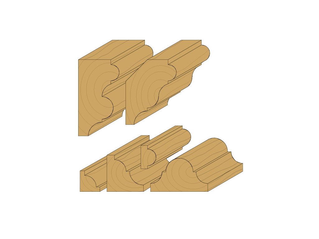 Použití: S víceprofilovými frézami CMT můžete tvořit mnoho profilů. Jednoduše nastavte výšku frézy pro vytváření klasických profilů jedním průchodem. Nebo udělejte několik průchodů pro vytvoření komplikovanějších a zdobnějších profilů.