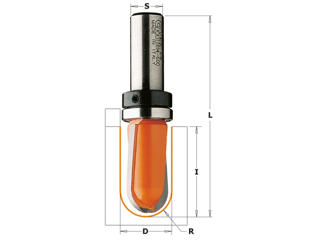 CMT Čelní vypouklá fréza s ložiskem - R9,5 D19x11,5 L50,8 S=6
