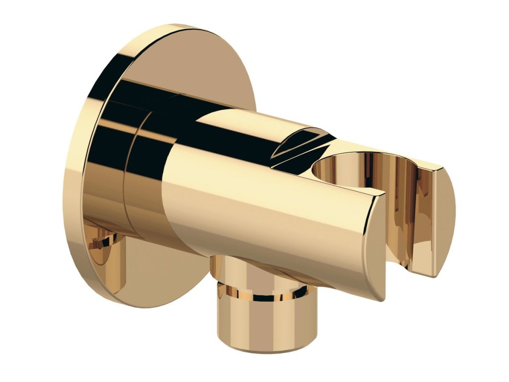 Držák sprchy kulatý, pevný, s vyústěním, zlato
