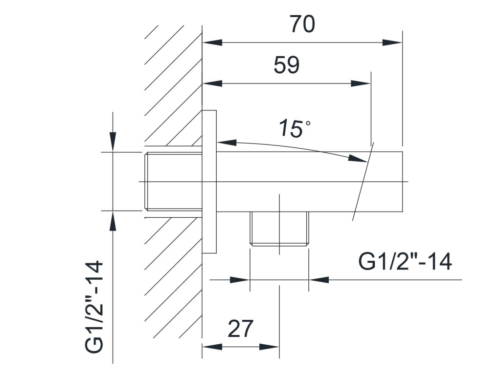 Držák sprchy kulatý středový, pevný, s vyústěním, chrom