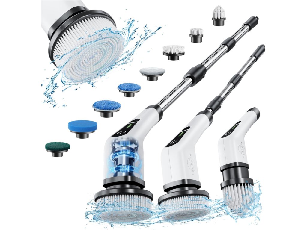 S tímto elektrickým rotačním kartáčem můžete vyčistit celý dům najednou. Výkonný motor je dostatečně silný pro hloubkové čištění. V kombinaci s čisticím prostředkem lze rychle odstranit odolné skvrny ve vašem domově. Elektrický Čisticí kartáč využívá vylepšený motor se dvěma rychlostmi otáčení. ① nízká rychlost: 300 otáček za minutu, ② vysoká rychlost: 400 otáček za minutu. Nastavitelná rukojeť se dvěma prodlužovacími tyčemi umožňuje snadné čištění blízkých i vzdálených míst. Ergonomický design rukojeti zvyšuje pohodlí a zabraňuje sklouznutí. Elektrický čisticí kartáč obsahuje 9 vyměnitelných čisticích hlavic pro různé použití. Elektrický Kartáč na čištění s vestavěnou dobíjecí baterií 2500 mAh je po 3 hodinách nabíjení připraven k použití až na 50 minut. Bezdrátové provedení umožňuje používat tento elektrický kartáč bez zástrčky, což zabraňuje nepořádku způsobenému dlouhými nabíjecími kabely a zvyšuje bezpečnost úklidu. Cítíte se unavení z domácího úklidu? tento elektrický kartáč dokáže nahradit různé druhy úklidových prací. Umožní vám provádět úklidové práce snadněji a rychleji.Výměnné nástavce jsou vhodné pro čištění koupelny, vany, sprchového koutu, pracovní desky, sporáku, dřezu, skla, kuchyňské linky, dlaždic, rohový kartáč je ideální na čištění spár, kohoutků a hran, látkový kartáč lze použít na čištění dřevěných podlah a nábytku, kromě toho můžete s tímto kartáče dokonce leštit a voskovat auto.