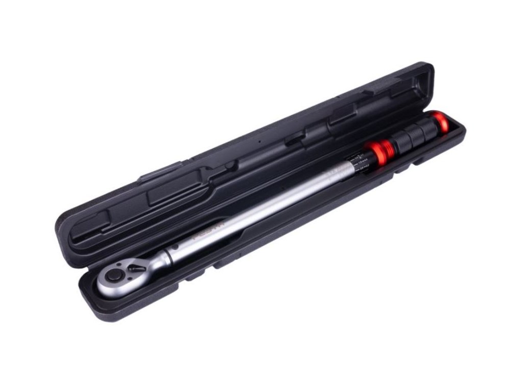 Kvalitní vnitřní mechanismus zajišťuje vysokou přesnost nastaveného momentu a při jeho dosažení klíč jasně signalizuje správné utažení. Pevná konstrukce a ergonomická rukojeť umožňují bezpečnou a pohodlnou práci i při vyšším zatížení. Upínání 1/2" je kompatibilní s běžnými nástrčnými hlavicemi a příslušenstvím.