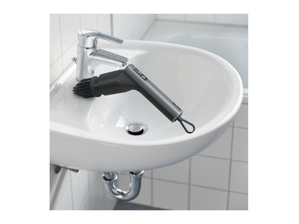Díky voděodolnosti IPX7 můžete kartáč bezpečně používat i ve vlhkém prostředí, například při čištění vany, sprchy nebo dlažby. Praktický LED indikátor vás navíc informuje o stavu baterie.