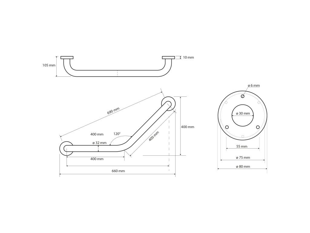 HANDICAP madlo 120° 400/400mm, nerez lesk