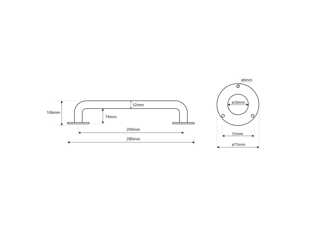 HANDICAP opěrné pevné madlo tvar U 813mm, černá mat