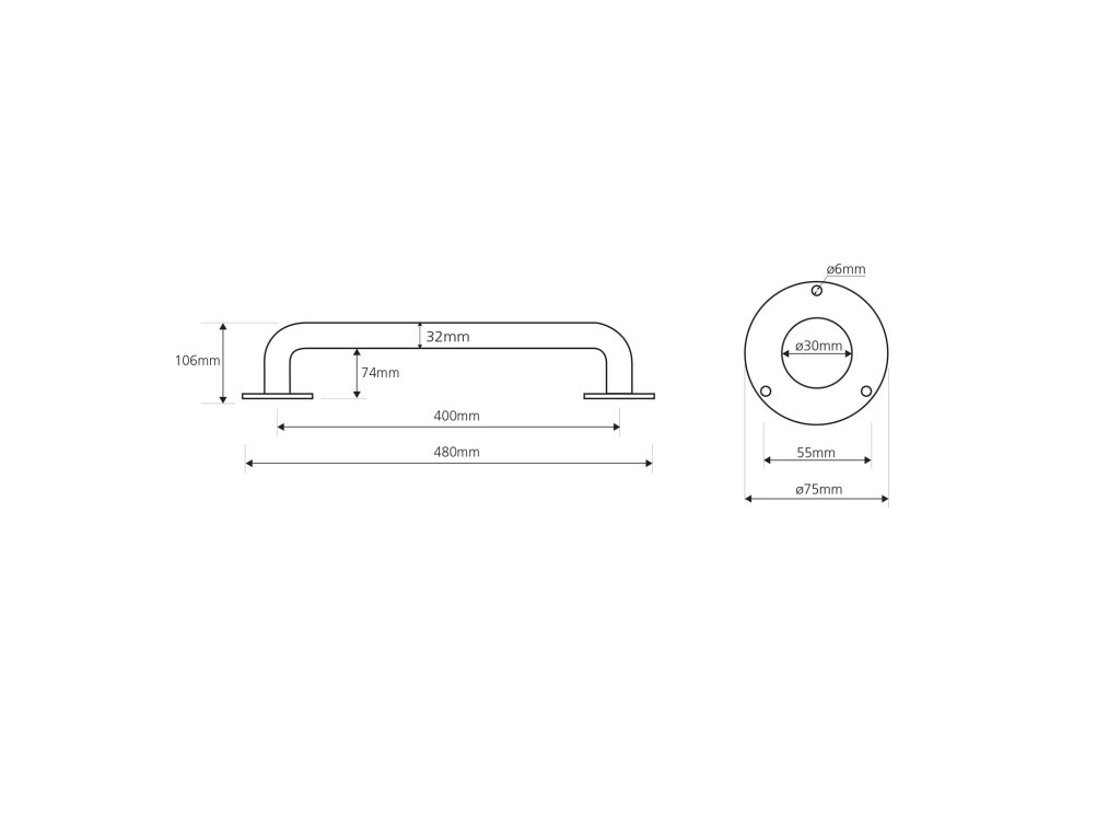 Madlo z leštěné nerezi k přivrtání na zeď. Šrouby, hmoždinky a krytky jsou součástí balení.