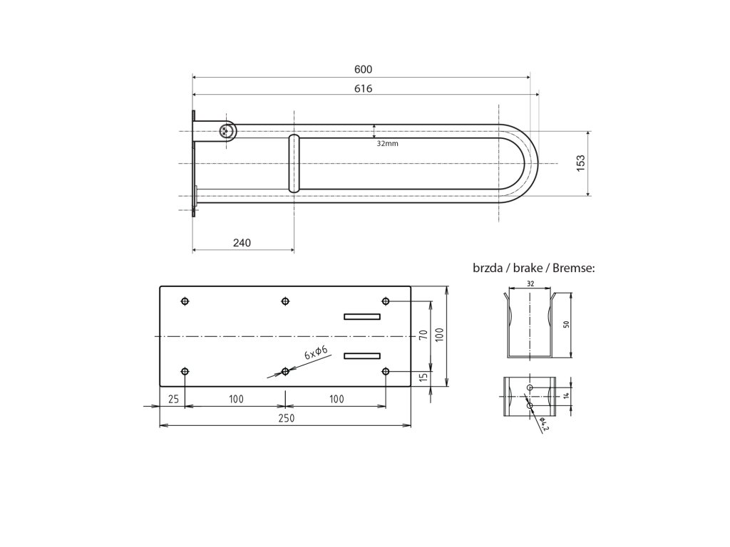 HANDICAP madlo sklopné 600mm, černá mat