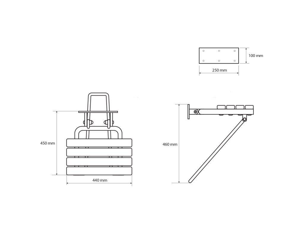 HANDICAP sklopné sedátko do sprchového koutu s opěrnou nohou, 44x45cm, bílá