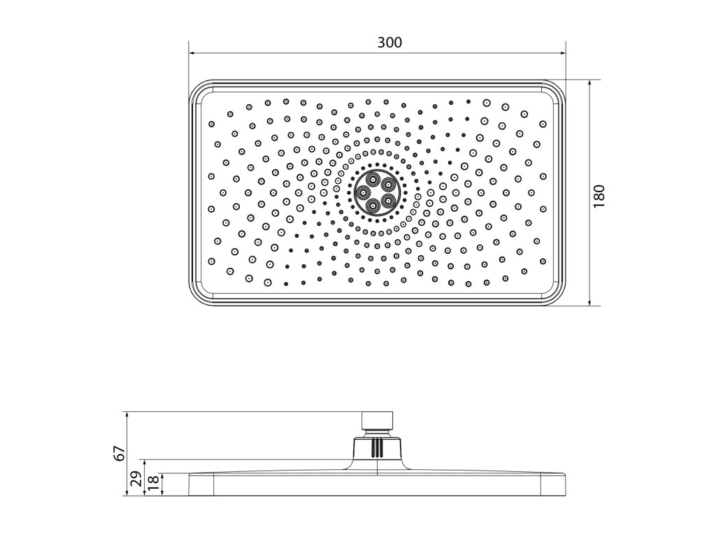Rozměry 300x180 mm – poskytuje bohatý a rovnoměrný proud vody.