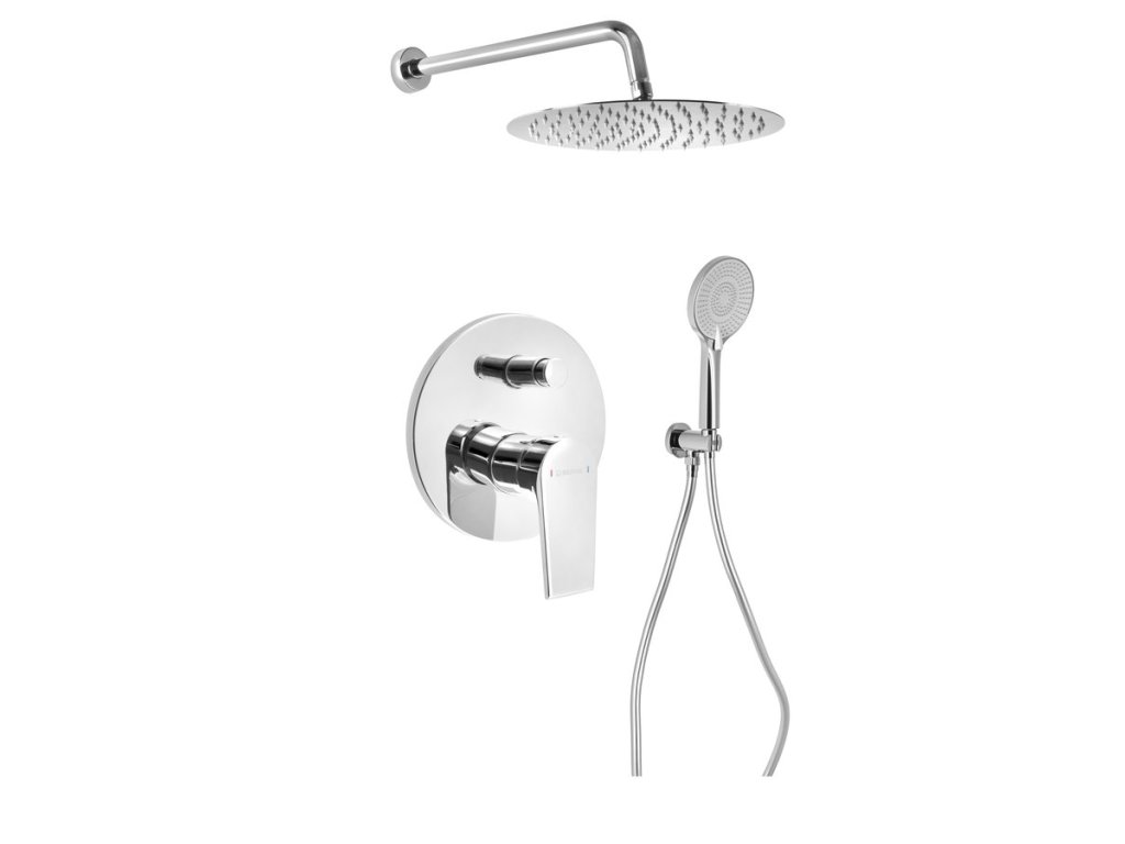 Sprchová sestava vyrobena z nerezi, povrchová úprava chrom. Určeno pro připojení k baterii s dolním vývodem. Hlavová nerezová sprcha 30x30cm. Včetně keramického přepínače,...
