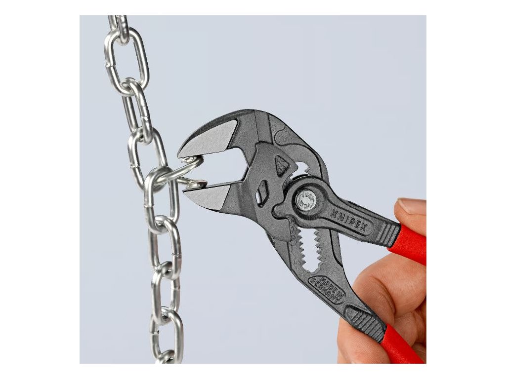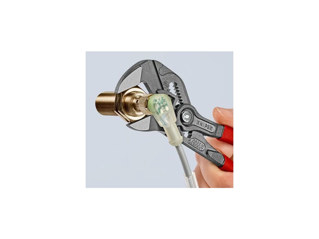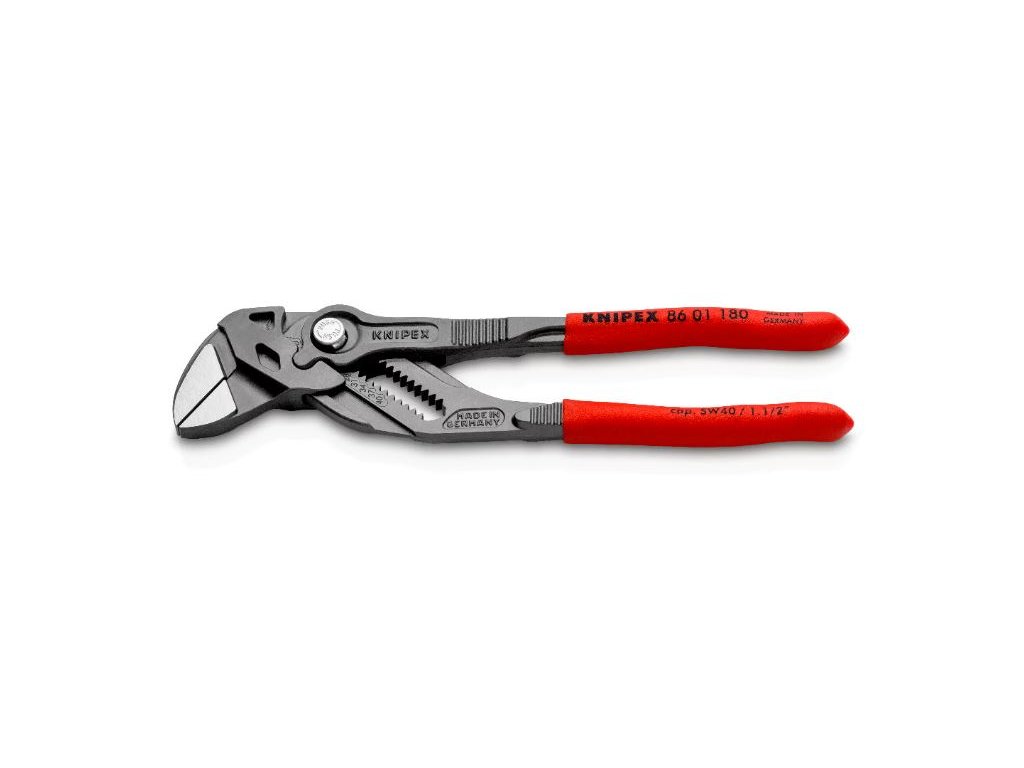 KNIPEX 8601180 Klešťový stavitelný klíč 180 mm je vylepšený nástroj, který nyní nabízí lepší výkon a nižší hmotnost. S dvěma dodatečnými pozicemi nastavení poskytuje zvýšenou úchopovou kapacitu, což umožňuje variabilní uchopení klíče až do šířky 40 mm. Tento klíč je o 10 % lehčí, ale zachovává stejnou stabilitu a odolnost, což usnadňuje manipulaci a používání při různých aplikacích.