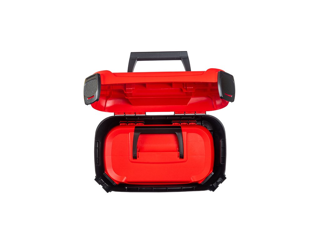 Set dvou plastových kufrů na nářadí s víkem.Menší kufr se dá vložit do prázdného většího kufru.