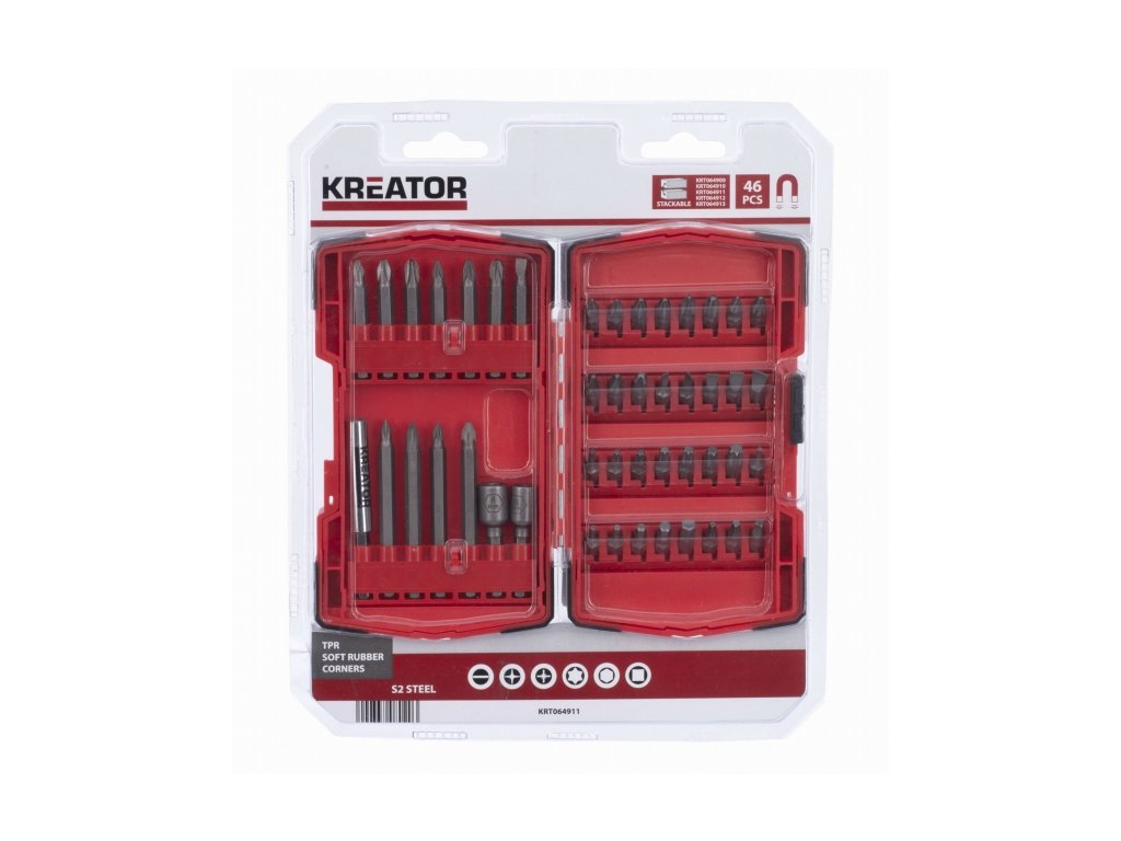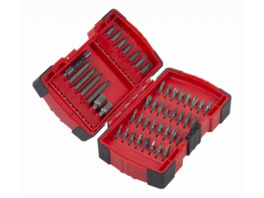 V této rozsáhlé 46dílné sadě šroubovacích bitů najdete nepochybně to správné příslušenství pro všechny vaše šroubováky:: magnetické nástrčné klíče a různé druhy bitů v široké škále velikostí ... Sada je dodávána v praktickém pouzdru s pogumovanými rohy o rozměru 173x113x53 mm. Specifikace: 2ks magnetické CRV nástrčné klíče 48 mm x 6 a 8 mm 1ks magnetický držák bitů 78,5 mm 32ks S2 bitů 25 mm: (Philips(R)) PH1 * 2, PH2 * 3, PH3 (Pozi) PZ1, PZ2 * 3, PZ3, (Plochý) SL3, SL4, SL5, SL6, SL7 (Torx(R)) T10, T15, T20, T25, T27, T30, T40, (Hex) H2, H2.5, H3, H4, H5, H6, (Čtverec) R1, R2, R3 7ks S2 bitů 50 mm: (Philips(R)) PH1, PH2, PH3 (Pozi) PZ1, PZ2, PZ3 (Plochý) SL5 4ks S2 bity 75 mm: (Philips(R)) PH1, PH2 (Pozi) PZ1, PZ2Doplňkové parametry