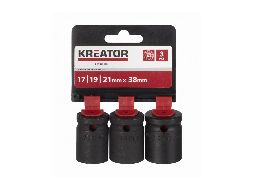 KRT095100 - 3ks nástrčných hlavic 17-19-21mm 1/2"