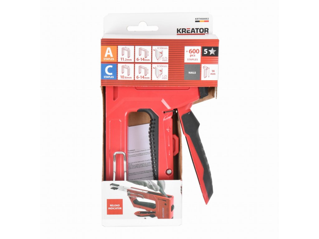 Rozlučte se se šrouby, lepidlem nebo připínáčky. Tato ruční sponkovačka KRTH00002 z naší řady Kreator se stane novým „sponkovacím“ nástrojem ve vaší sadě nářadí. Tato sponkovačka umožňuje sešívání různých materiálů, jako je karton, fólie, plachty, koberce, dřevo a další. Sponkovačka se snadno doplňuje a pracuje se sponkami o délce od 6 mm do 14 mm. Její robustní kovové pouzdro a ergonomická protiskluzová rukojeť z ní činí odolný nástroj, který nabízí dostatek pohodlí při používání. Zámek rukojeti navíc umožňuje snadné a kompaktní skladování.