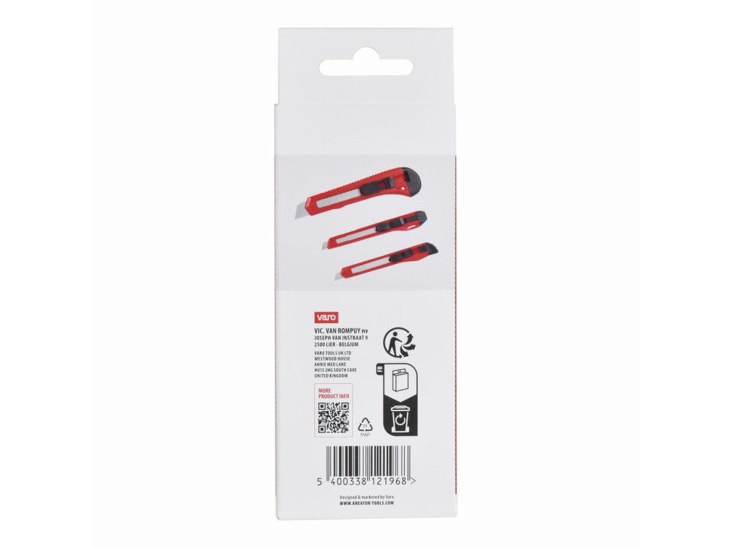 S touto sadou 3ks ostrých odlamovacích nožů KRTH00101 od Kreator snadno řežete papír, karton, tapety, pásky a další materiály. Čepel můžete zaaretovat pomocí zajišťovacího mechanismu. Sada obsahuje dvě čepele o délce 80 mm, šířce 9 mm a jednu o délce 100 mm, šířce 18 mm. Až přijde čas na novou, ostřejší čepel, můžete tupou část jednoduše odlomit.