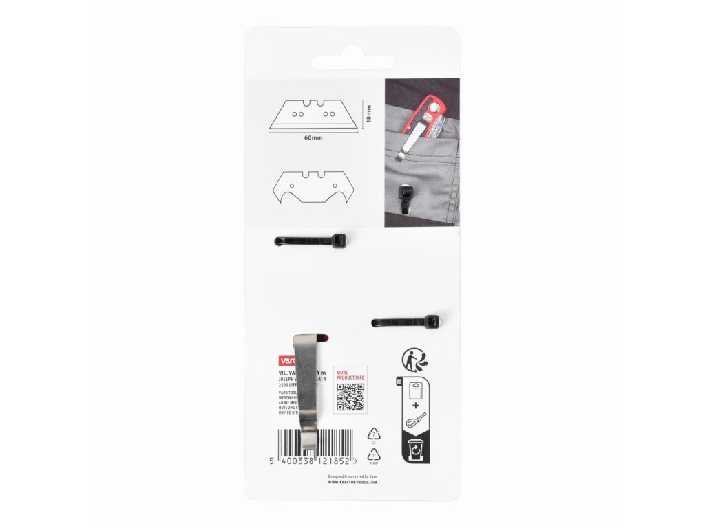 Snadno řežte koberce, vinyl, střešní krytinu, obaly a další materiály díky ostrým a odolným čepelím tohoto robustního a skládacího nože KRTH00201 od Kreator. Můžete používat rovné i zahnuté čepele. Čepele lze snadno vyměnit. Měkká gumová rukojeť poskytuje lepší úchop a pohodlné používání. Pro vaši bezpečnost se čepel po použití okamžitě zasune. Čepel můžete zaaretovat pomocí zajišťovacího mechanismu.