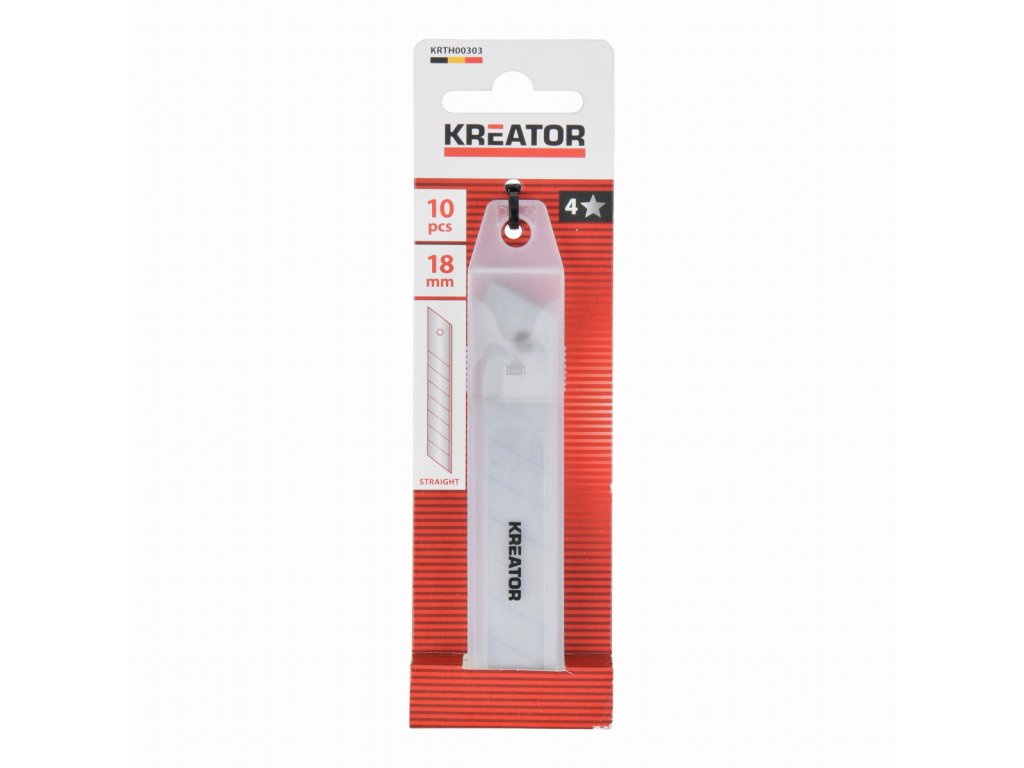 Toto je 10-dílná sada odlamovacích čepelí KRTH00303 od Kreator. Rovné náhradní čepele mají šířku 18 mm a pasují na většinu odlamovacích řezaček stejné šířky.