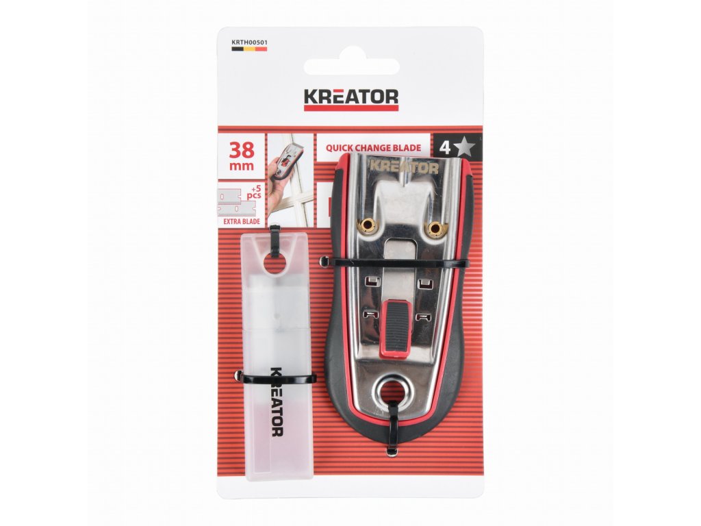 Tato škrabka KRTH00501 z naší řady Kreator je vybavena měkkou protiskluzovou rukojetí pro pevný úchop. Použijte ji k odstranění barvy, lepidla, samolepek z oken a zbytků jídla, které se přilepily na skleněných varných deskách (keramických, indukčních nebo plynových). Díky posuvnému zámku nemusíte při řezání držet tlačítko. Škrabka je dodávána s 5 náhradními břity, které lze snadno vyměnit.