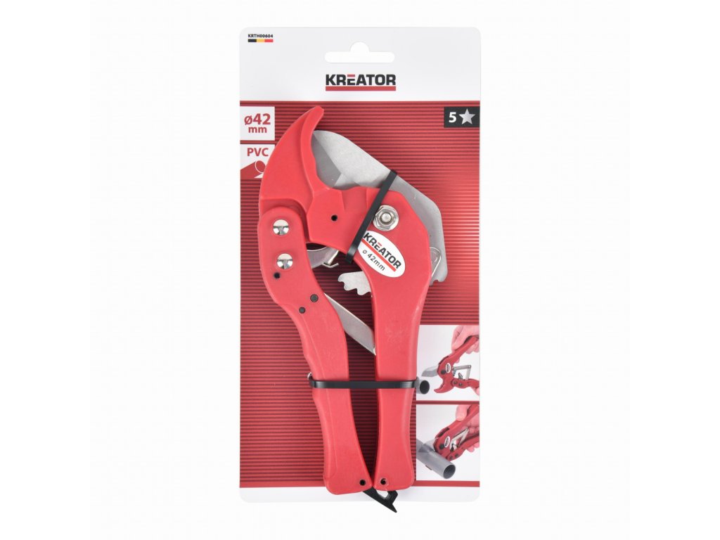Tato řezačka trubek KRTH00604 od Kreator dokáže bez námahy řezat PVC trubky o maximálním průměru 42 mm. Je vybavena ostrou, leštěnou čepelí s nepřilnavým povlakem. Jedná se o profesionální čepel s tvrdostí HRC 56-58.