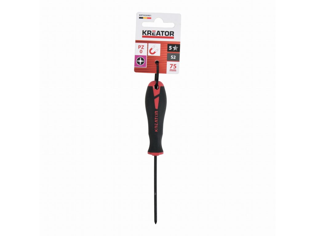 Tento šroubovák KRTH20901 z naší řady Kreator má 75 mm dlouhou stopku a je vyroben z vysoce kvalitní oceli S2. Magnetický hrot PZ0 urychluje proces šroubování. Měkká protiskluzová rukojeť poskytuje pevný úchop a rukojeť má integrované závěsné oko pro snadné skladování.
