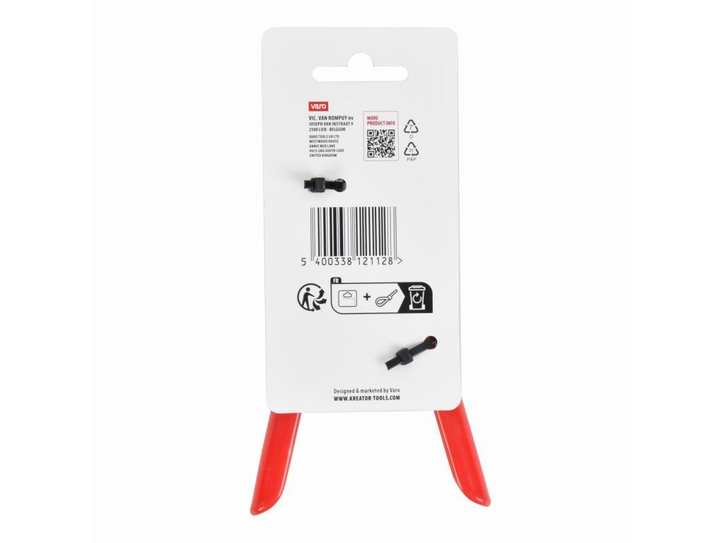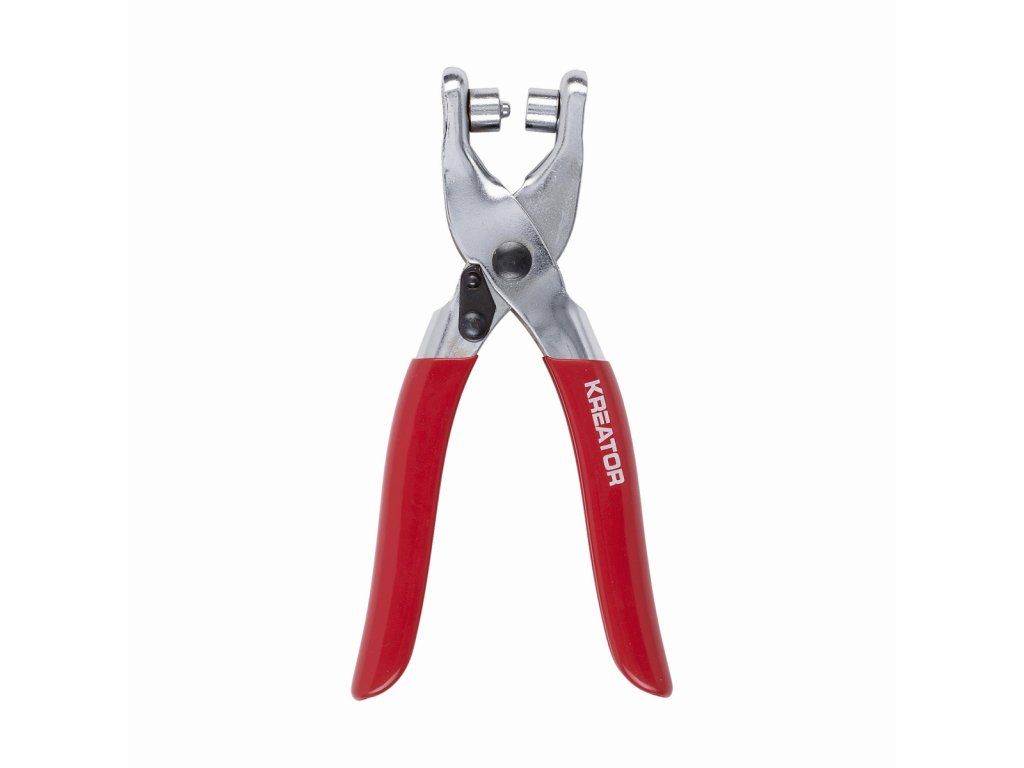 Tyto kleště na průchodky / očka KRTH62504 z naší řady Kreator lze použít k připevnění oček na textilie a jiné tenké materiály s maximálním průměrem 7 mm. Měkké protiskluzové rukojeti zajišťují pevný úchop.