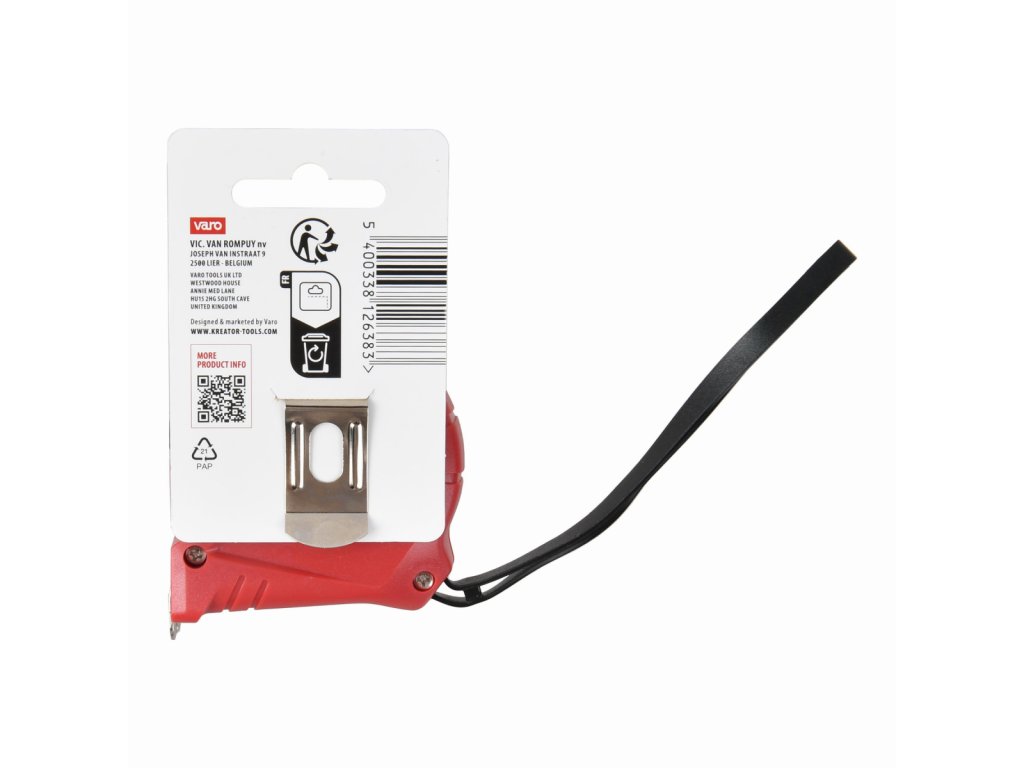 Tento svinovací metr KRTH70103 z naší řady Kreator má maximální délku 5 m. Zajistěte jej pomocí zajišťovacího tlačítka, aby se během používání nenavíjel. Pokud potřebujete mít volné ruce, můžete si metr snadno připevnit na opasek díky klipu na opasek.