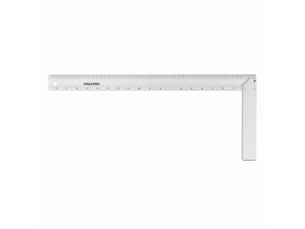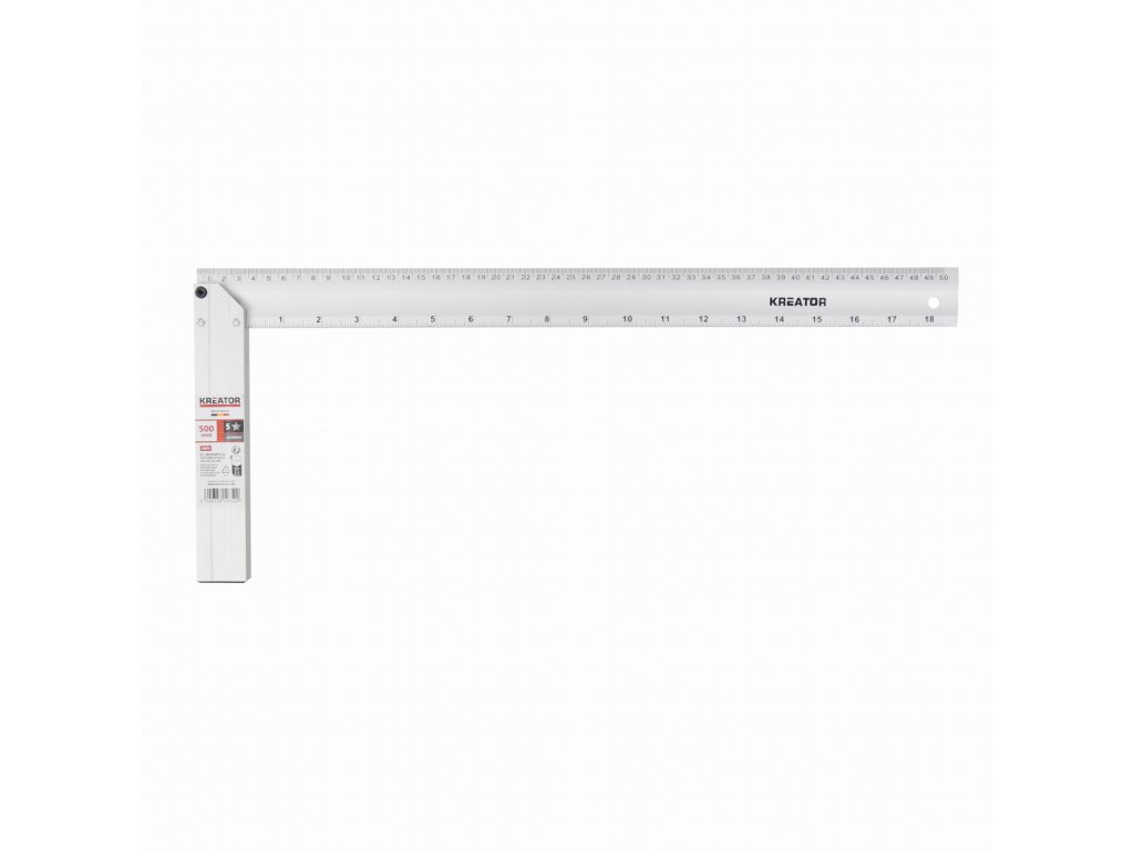 Tento úhelník KRTH70503 od Kreator má délku 500 mm a je vyroben z pevného, ale lehkého hliníku. Lze jej použít k měření a značení úhlů 90st a 45st. Má stupnici v mm i palcích.