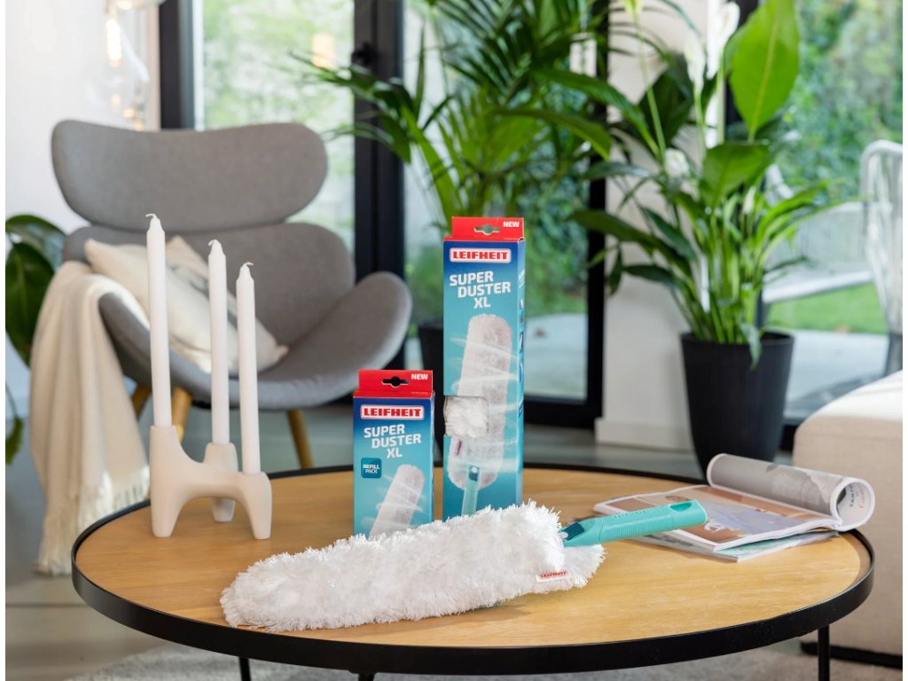 Pokud hledáte účinnou prachovku pro úklid velkých ploch, Leifheit SUPERDUSTER XL 41250 je ideální volbou. Díky široké pracovní ploše, kvalitním mikrovláknům a možnosti pratelného potahu je praktická, odolná a šetrná ke všem povrchům. Je navíc kompatibilní s Click systémem Leifheit, takže ji lze snadno připojit k teleskopickým násadám a dosáhnout i do výšek. Skvělý pomocník pro rychlý, ekologický a každodenní úklid.