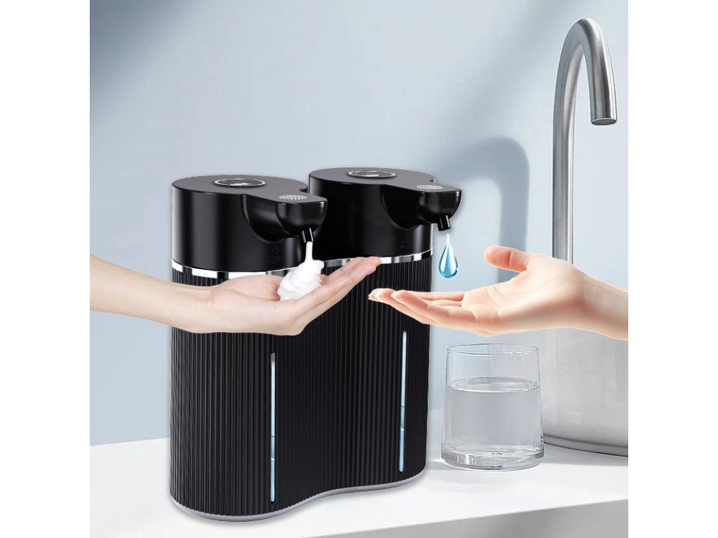 Bezdotykový dobíjecí dávkovač 2v1 – gel a pěna v jednomUdržujte prostor kolem dřezu čistý, organizovaný a hygienický. Bezdotykový dávkovač 2v1 se dvěma oddělenými zásobníky umožňuje současné používání gelu i pěny bez nutnosti mít na pracovní ploše několik lahví.Stačí přiložit ruku k senzoru a dávkovač automaticky uvolní přesně odměřené množství přípravku – bez dotyku, bez kapání a bez zbytečného nepořádku.Proč si ho oblíbíte?Bezdotykové ovládání – maximální hygiena při vaření i úkliduDva samostatné zásobníky – prostředky se nemíchajíMožnost volby pěna / gel – sami určíte, který přípravek bude pěnovýÚspora místa – konec plastových lahví kolem dřezuVolně stojící i nástěnná instalaceModerní minimalistický design vhodný do kuchyně, koupelny i dílnyFlexibilní použitíKaždá náplň má vlastní dávkovací systém, takže použijete vždy jen ten prostředek, který právě potřebujete.Do pěnového zásobníku stačí běžné tekuté mýdlo nebo saponát naředit vodou v poměru 1 : 3–5. Sami si tak zvolíte, zda bude pěna z mýdla nebo ze saponátu na nádobí.Ideální řešení do kuchyněPři vaření často přecházíte mezi mytím rukou, oplachováním potravin a mytím nádobí. Díky dvojité konstrukci máte vše okamžitě po ruce – jedním přiložením ruky vytvoříte bohatou pěnu, druhým dávku gelu.Stačí doplnit oblíbené náplně a užívat si čistý, přehledný a moderní prostor bez zbytečných lahví.Doplňkové parametry