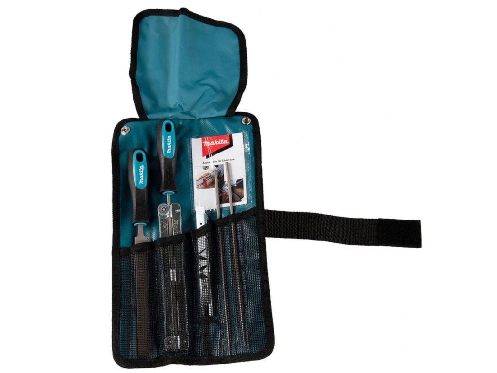 Sada Makita D-72160 je navržena pro snadnou a efektivní údržbu řetězových pil. Obsahuje 5 dílů, včetně kulatých pilníků o průměru 4,5 mm, plochého pilníku, vodítka a měrky, které umožňují přesné broušení řetězu.