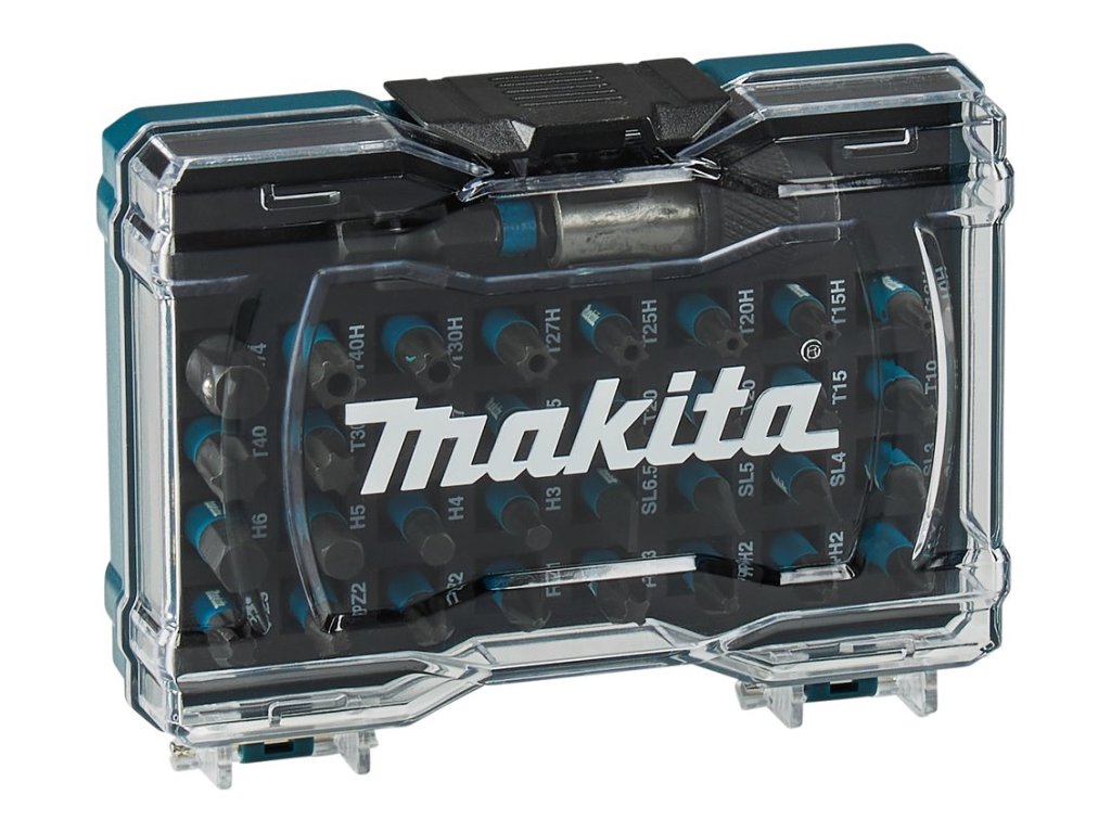 Makita E-00022 je 31dílná sada bitů uložená v plastovém obalu ve tvaru akumulátoru, který dokonale zapadne do výřezu v kufrech Makita.
