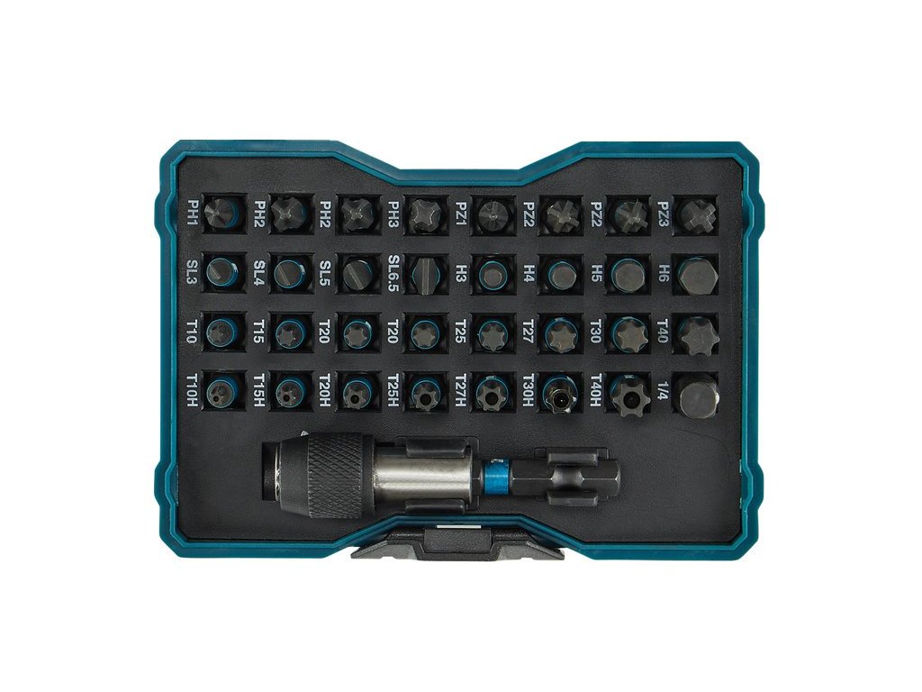 Phillips: PH1 2x, PH2 4x, PH3 1x Pozidriv: PZ1 2x, PZ2 5x, PZ3 1x S plochou drážkou: SL4, SL5.5, SL6.5 Torx: T10 2x, T15 2x, T20 2x, T25 3x, T30 2x, T40 1x 1 x magnetický...