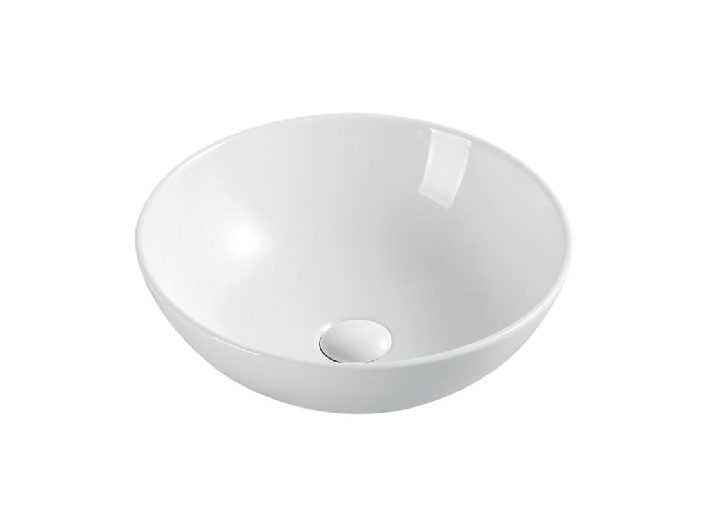 2.) Kulatý design: S průměrem 400 mm a výškou 145 mm má umyvadlo kompaktní a stylový vzhled, který je ideální pro menší koupelny nebo pro umístění na desku, kde se prostor efektivně využívá.