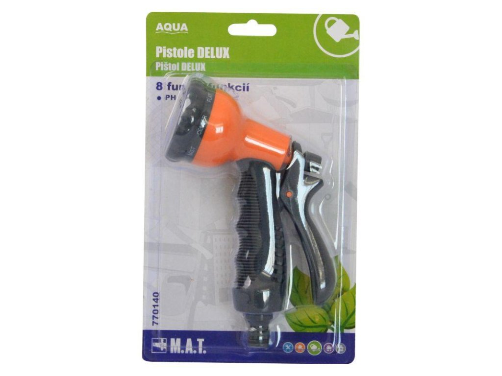 materiál: plast Proudová pistole DELUX je s 8 funkcemi ideálním doplňkem zahradní hadice.Doplňkové parametry