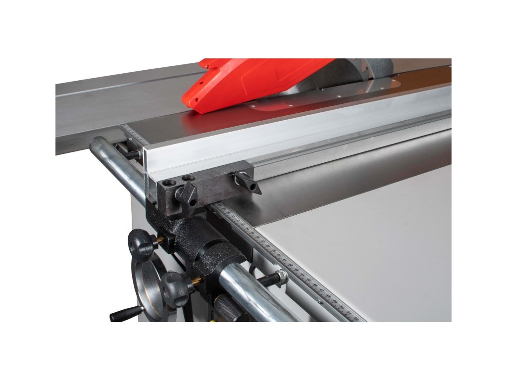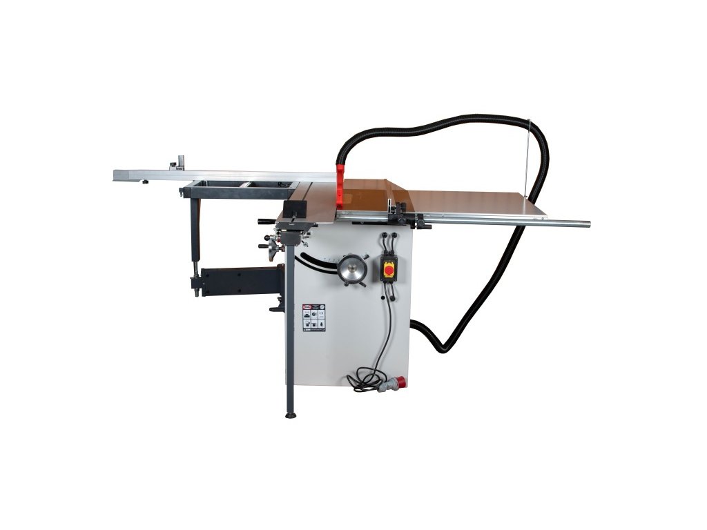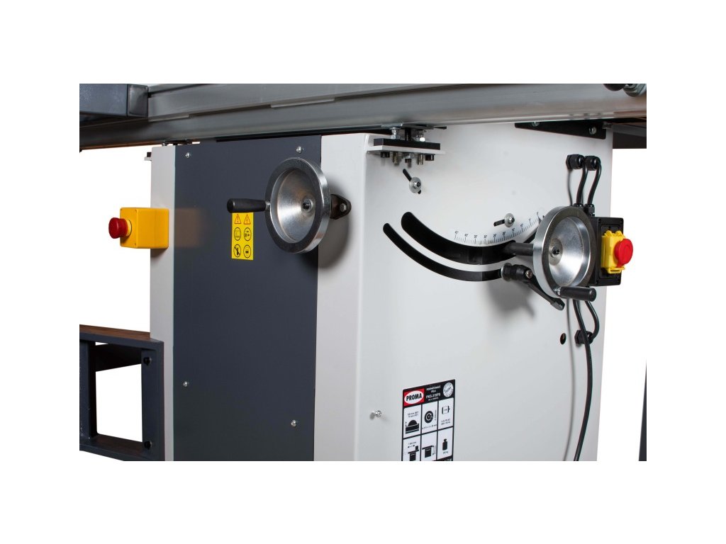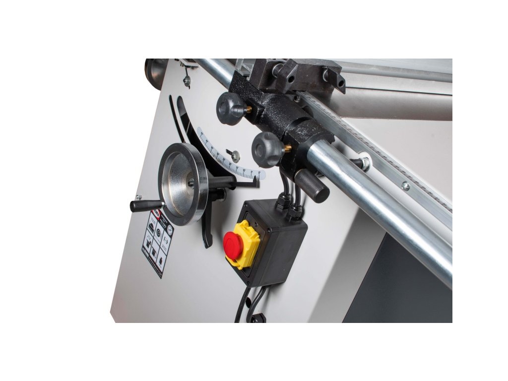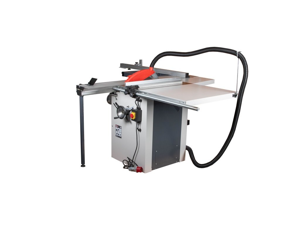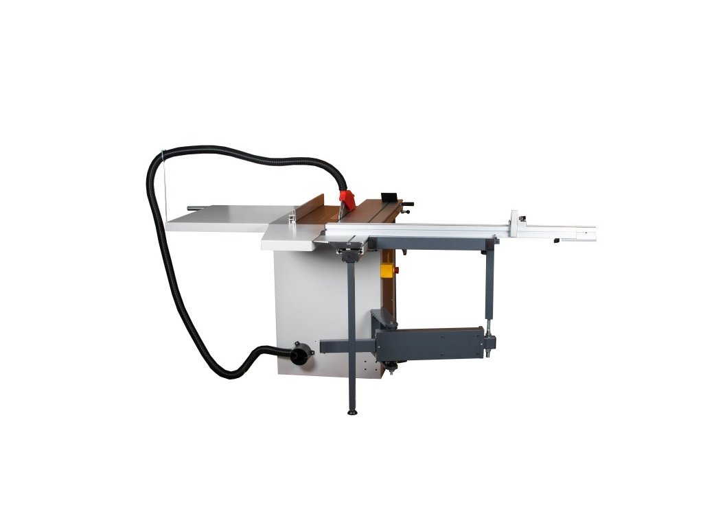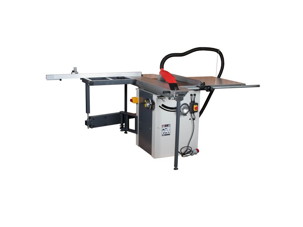 Stojanová kotoučová pila je vhodná pro příčné i podélné dělení dřevěných materiálů. Vyznačuje se optimálním rozsahem otáček, který umožňuje využití nástrojů s plátky ze slinutých karbidů. Velkou výhodou je základní litinový stůl s dlouhým pojezdovým stolem, kterému zaručuje přesnost rybinové vedení. Kotoučová pila umožňuje pomocí velkých kol snadné výškové nastavení prořezu materiálu a nastavení úhlu kotouče. Při maximálních prořezech u tohoto typu se pila vyznačuje velkým výkonem a tuhou konstrukcí.Doplňkové parametry