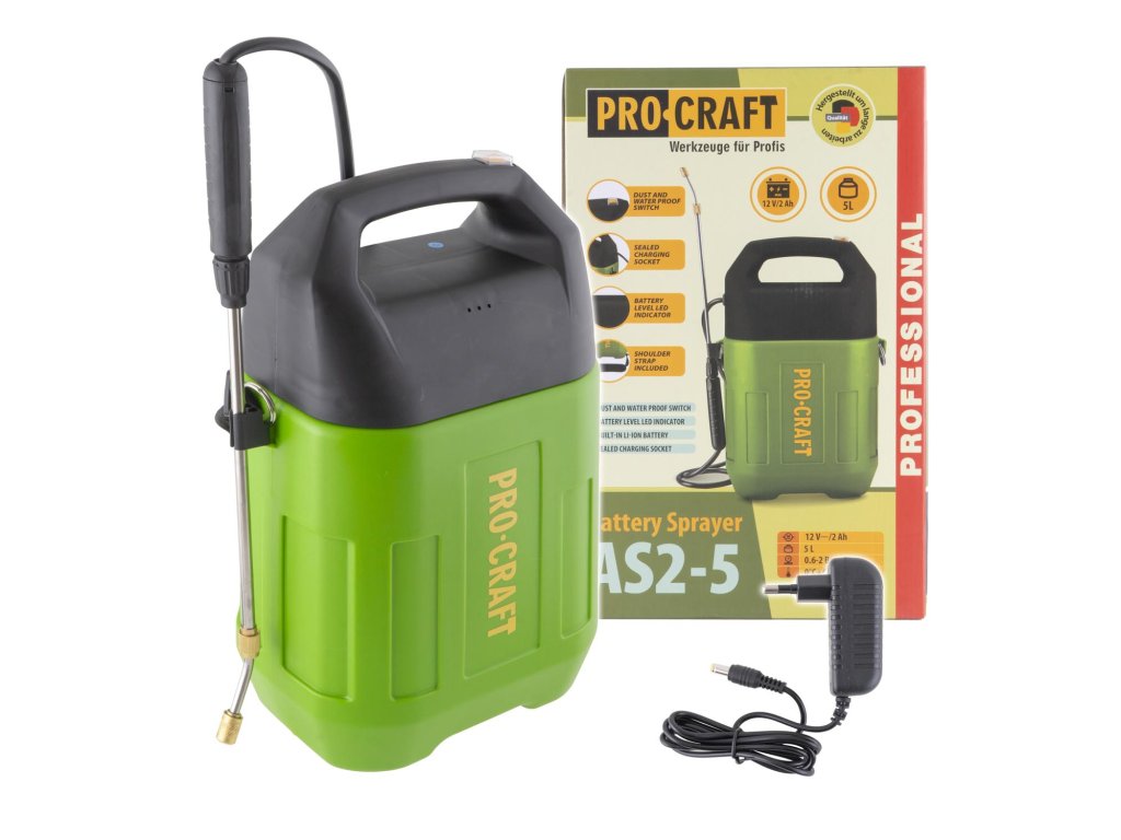 Procraft AS2-5 je spolehlivý akumulátorový postřikovač s dlouhou výdrží, snadnou manipulací a praktickou výbavou. Skvělá volba pro zahrádkáře i profesionální použití.