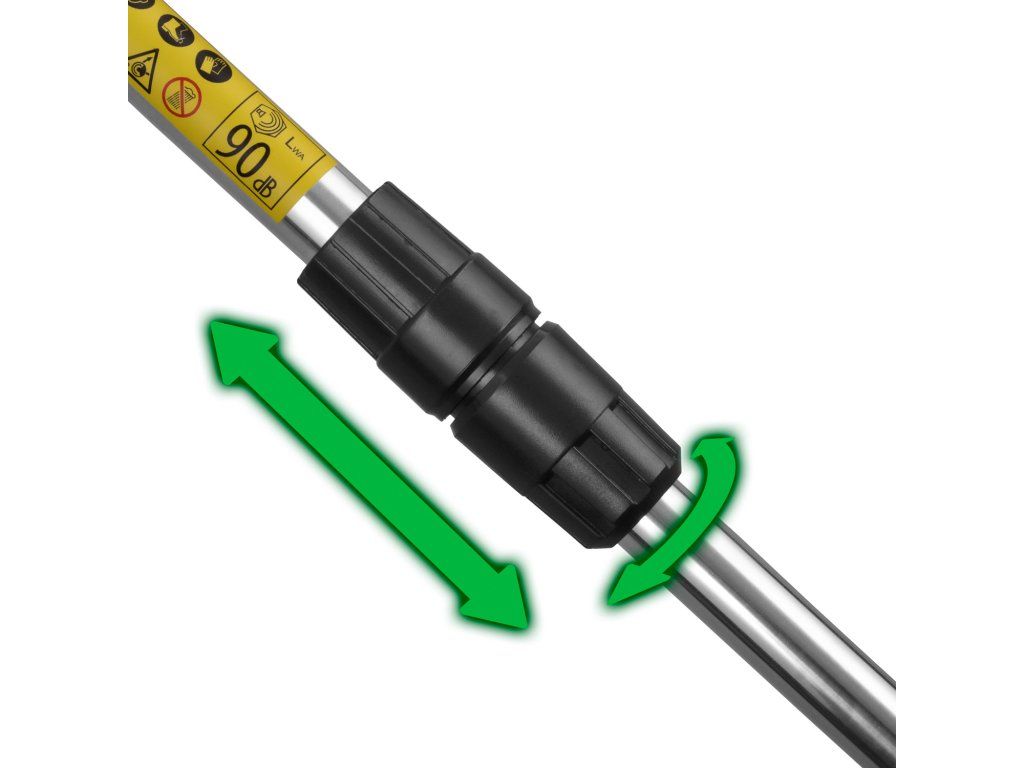 Teleskopická tyč pro nastavení délky: Umožňuje rychlé přizpůsobení délky nářadí výšce uživatele i konkrétní práci. Zajišťuje pohodlné používání bez ohýbání zad a lepší dosah při sečení či úklidu.