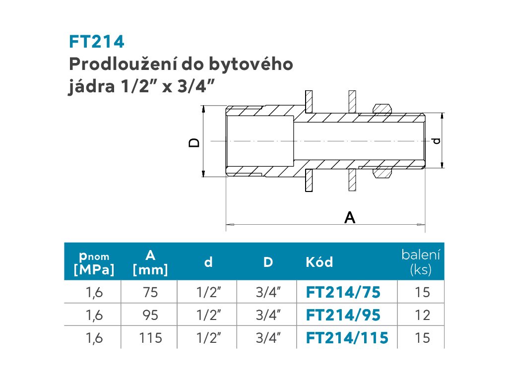Prodloužení 1/2"x3/4" 75mmDoplňkové parametry