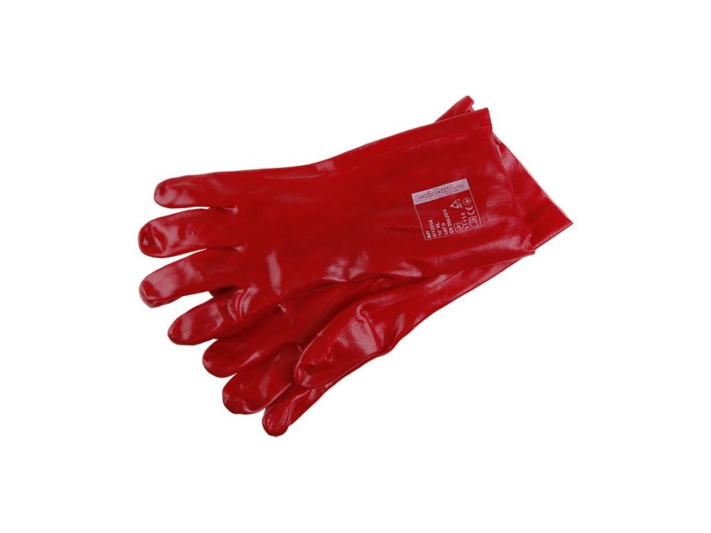 Šitý bavlněný úplet máčený v pvc, délka 35cm, CE EN 388, velikost 10.