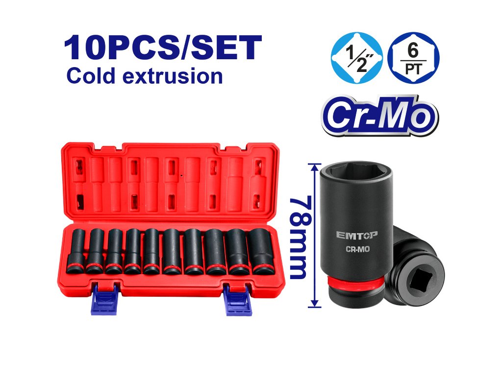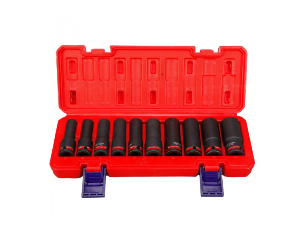 Sada 10 ks prodloužených rázových nástrčných hlavic 1/2" L-78 mm