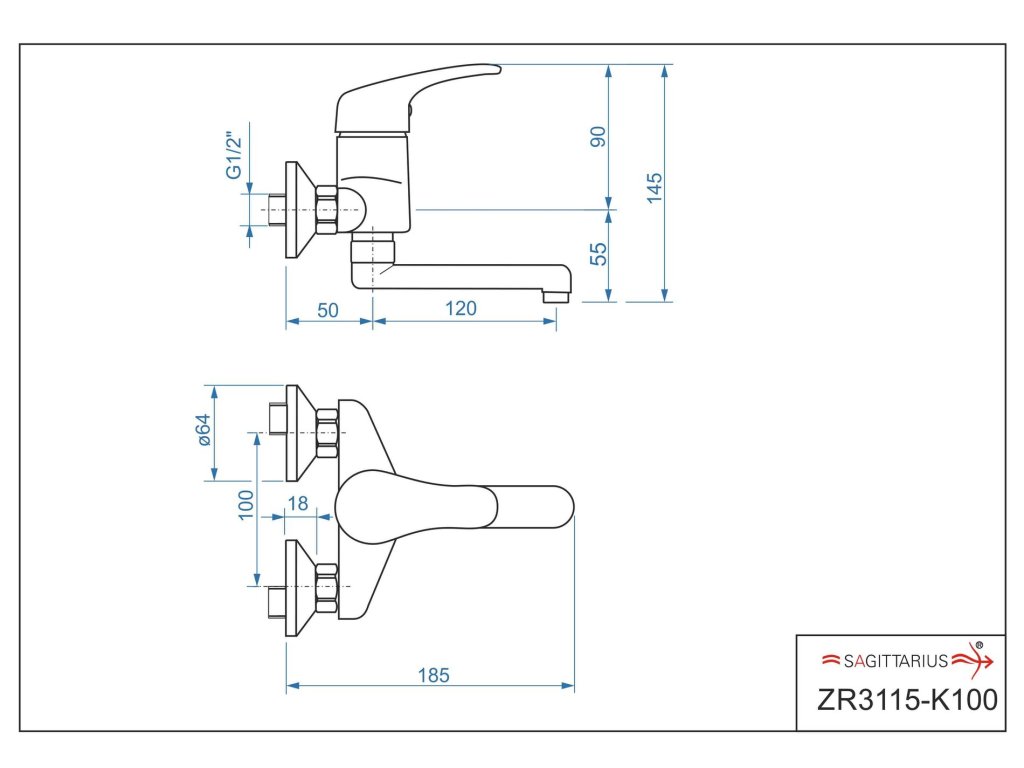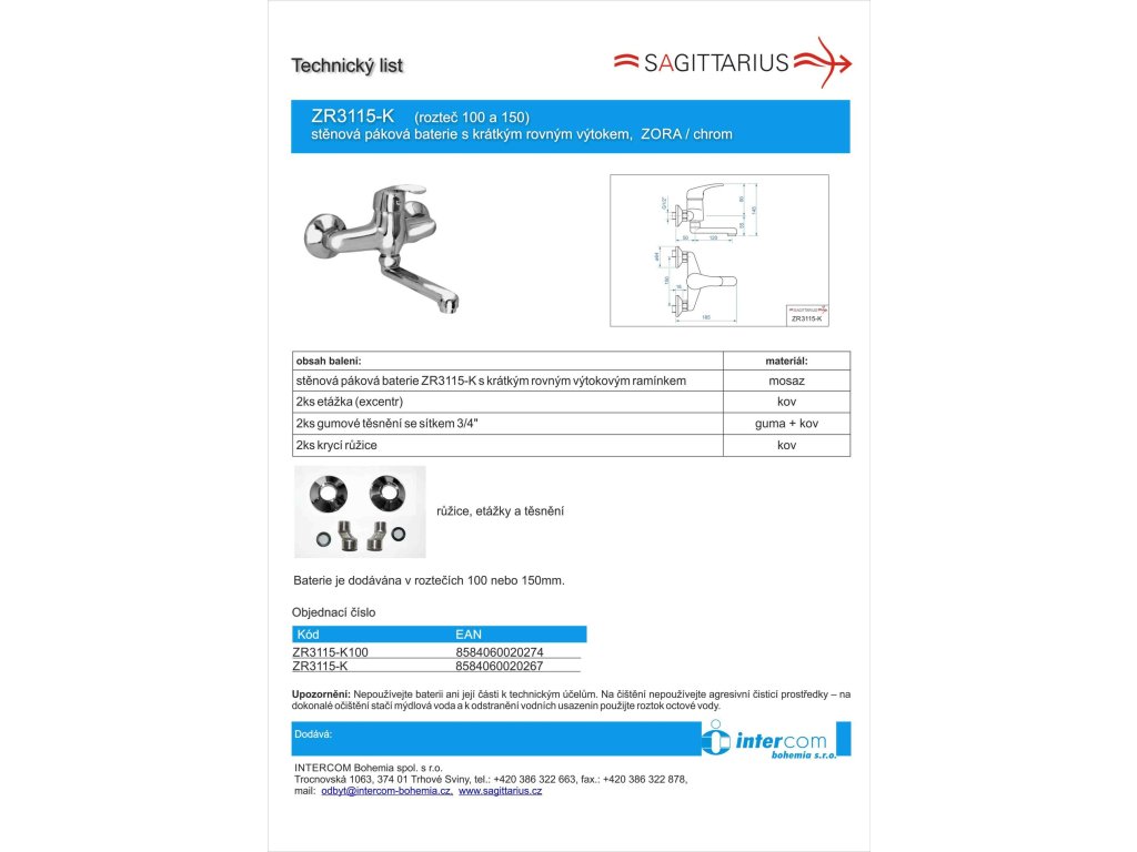 Sagittarius dřezová nástěnná baterie s ramínkem "K" ZORA ZR3115-K100, rozteč 100 mm, chrom