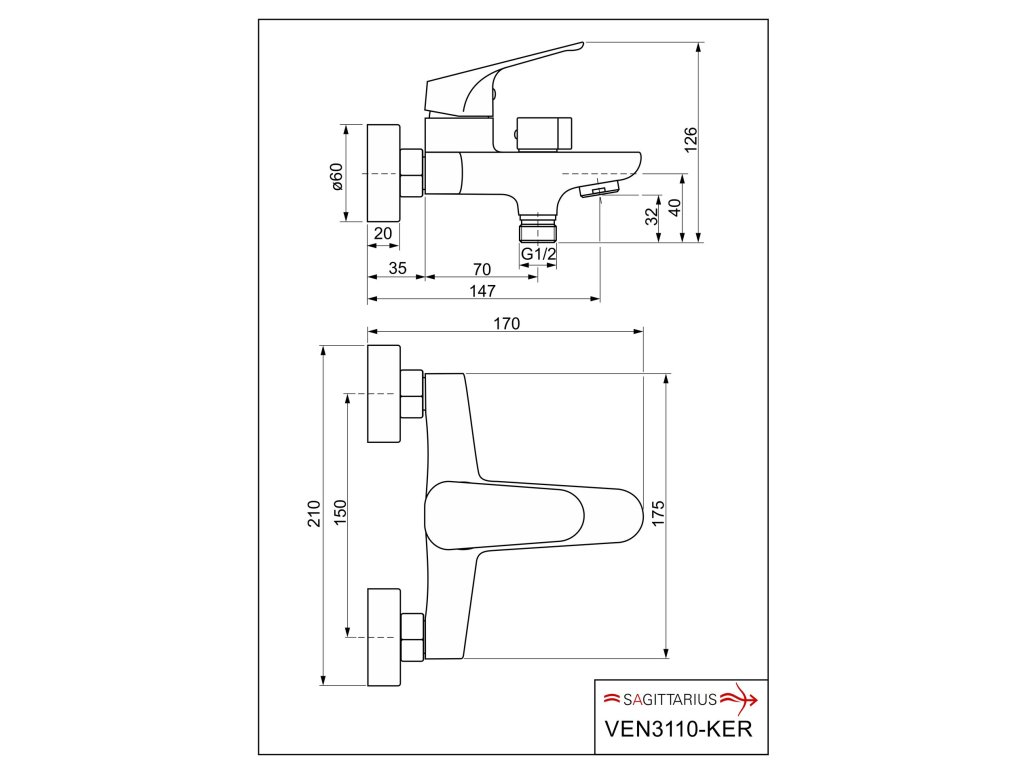 Sagittarius vanová baterie VENUS VEN3110-KER, rozteč 150 mm, chrom