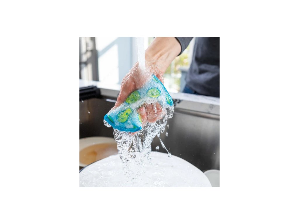 Polštářky Scour Daddy jsou navrženy pro každodenní i náročné úklidové práce. Materiál Scrubber zajišťuje vysokou odolnost a schopnost odstranit i ty nejodolnější usazeniny a mastnotu, zatímco FlexTexture® mění svou tvrdost – ve studené vodě zůstává pevný a účinný proti připáleninám, v teplé vodě změkne a stává se ideálním pro jemnější čištění. Díky této kombinaci si Scour Daddy poradí se širokou škálou povrchů, aniž by je poškodil.