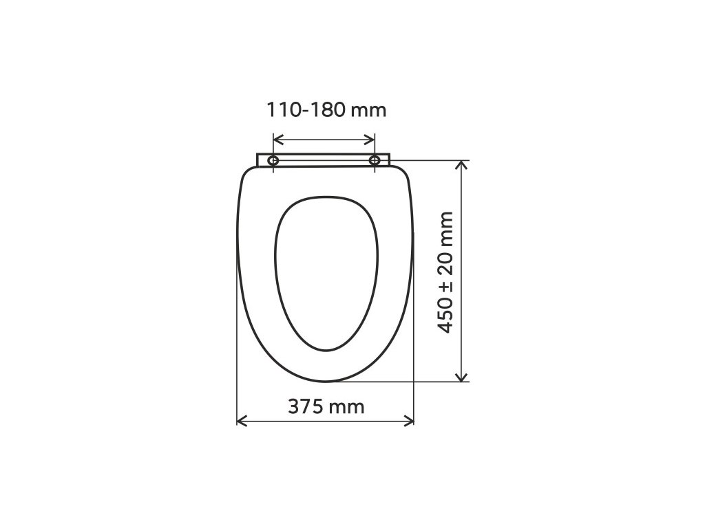 MDF Úchyty chromovaná mosaz. Rozměr 44.5±2 x 37.5 cm. Rozteč 110 - 180 mm. Váha sedátka 3,1 kg. 4 ks v kartonu.Doplňkové parametry